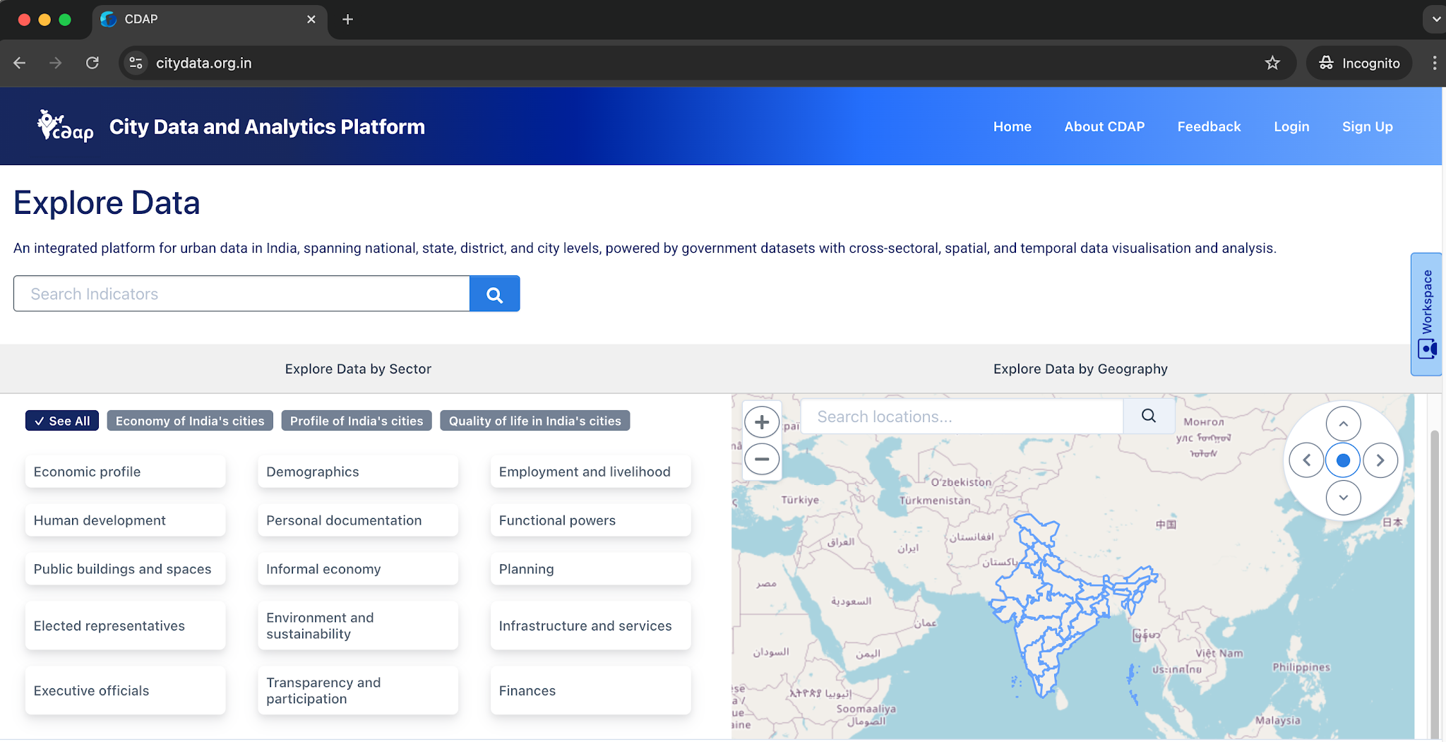 Today, CDAP brings together ~1,00,000 urban data points across national, state, district, and city levels — enabling place-based insights, cross-city comparisons, and more informed decision-making for policymakers, researchers, and citizens.